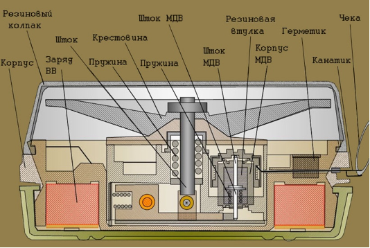 Дана міна складається з пластикового корпусу з неопреновою кришкою, яка закриває натискну пластину, виготовлену з нержавіючої сталі. Механізм запалу вміщений у литий алюмінієвий кожух усередині корпусу міни й оточений основним зарядом вибухової речовини. Також міна оснащена сталевою запобіжною чекою, яка приєднана до дроту, закріпленого, своєю чергою, на механізмі зведення. Видалення запобіжної чеки призводить до того, що приєднаний дріт обертає механізм зведення підривника. Це, своєю чергою, вивільняє пружинний поршень. А заряд вибухової речовини ТГ-40 має масу 50 г.